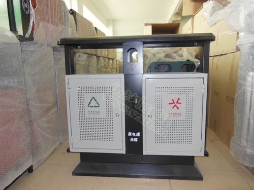 天津景區(qū)的這款F49戶外分類環(huán)保垃圾桶的規(guī)格為1000*350*1000mm,采用優(yōu)質(zhì)鍍鋅板經(jīng)剪板、折彎、焊接、打磨、拋光、酸洗、磷化等等一系列標準化生產(chǎn)流程制作而成。鋼制垃圾桶桶身設可回收垃圾、不可回收垃圾、禁止吸煙、廢電池和廢光盤回收四種垃圾回收標志,符合時下景區(qū)提倡的垃圾分類、垃圾減量、垃圾回收的理念。