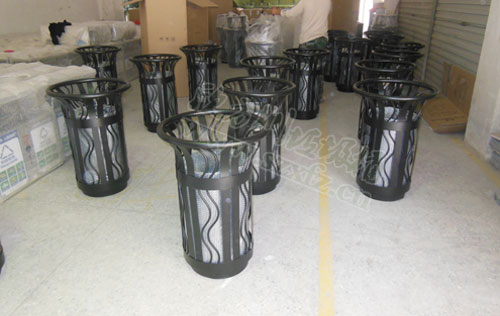 客戶訂購(gòu)的這款F01花籃垃圾桶,名稱也叫鋼制垃圾桶?;ɑ@式戶外垃圾桶頂圈圓管用35mm,厚1.5mm,扁鋼用厚度3.0mm,寬30mmm,花籃式戶外垃圾桶桶身上下圈厚度3.0mm*高65mm.花籃式戶外垃圾桶內(nèi)桶分別用塑料桶或者玻璃鋼兩種材質(zhì)。外觀呈花籃,整個(gè)形狀有點(diǎn)像打籃球的投籃口。學(xué)校的女同學(xué),投遞垃圾時(shí)可以練習(xí)投籃,不在怕投不上高高的籃球架上去。環(huán)保與娛樂(lè)相結(jié)合,為校園添加不少樂(lè)趣。