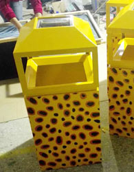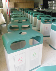 鋼制垃圾桶桶身及頂蓋 采用電解鍍鋅鋼板為基材,防腐性能高于普通冷軋鋼板。該產品采用目前先進的應用于汽車制造領域的整體拉伸成型工藝,造型美觀、無焊接一次成型,堅固性強,是鋼板材質的首選工藝。