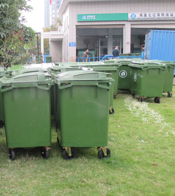 蘇州市政為加強市容環衛責任制落實,督促店家嚴格落實市容環衛責任制,履行市容環衛責任。環衛設備上選用欣方圳垃圾桶廠家660L大型塑料環衛垃圾桶,桶身掛車部分特別加厚可直接上環衛掛車,降低環衛工人勞動強度