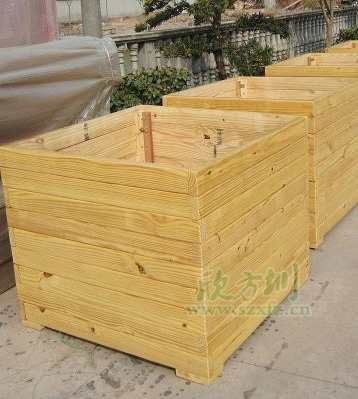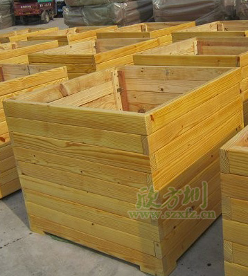 欣方圳木質花箱原材料采用真空泵排除空氣、填充防腐液、加壓滲透、抽真空排出多余防腐液達到先進的防腐防蟲工藝。
