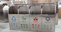小區垃圾分類站點四類垃圾分類垃圾桶,不銹鋼無疑是較為理想的材質。它戶外防銹蝕效果好,表面金屬光澤高檔美觀,污漬也易清理。不銹鋼分類桶產...