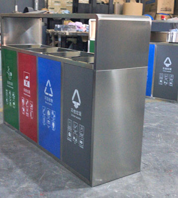 欣方圳不銹鋼戶外四分類垃圾箱批量生產(chǎn)圖