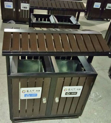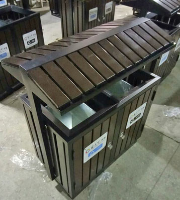 屋形鋼木分類垃圾桶工廠生產(chǎn)圖